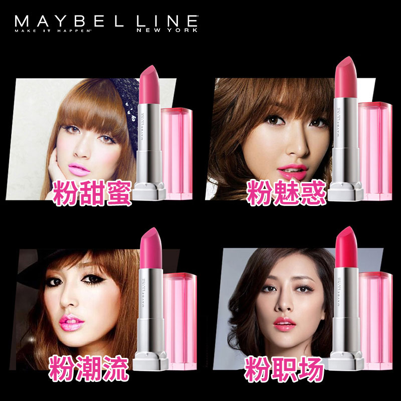 商品名称:美宝莲绝色持久唇膏 粉红警报 魅惑炫亮润泽 唇彩口红